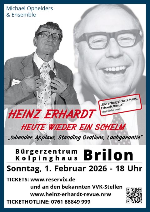 Die Heinz Erhardt Revue: Eine großartige Verbeugung vor dem zeitlosen Jahrhundert-Komiker Heinz Erhardt. Wer federleichte Wortspiele und temporeiche Texte mag, kann nicht umhin, Heinz Erhardt zu lieben. Seine filme sind bis heute Kult, seine amüsante art absurdum zu fühen, ist nach wie vor unerreicht.